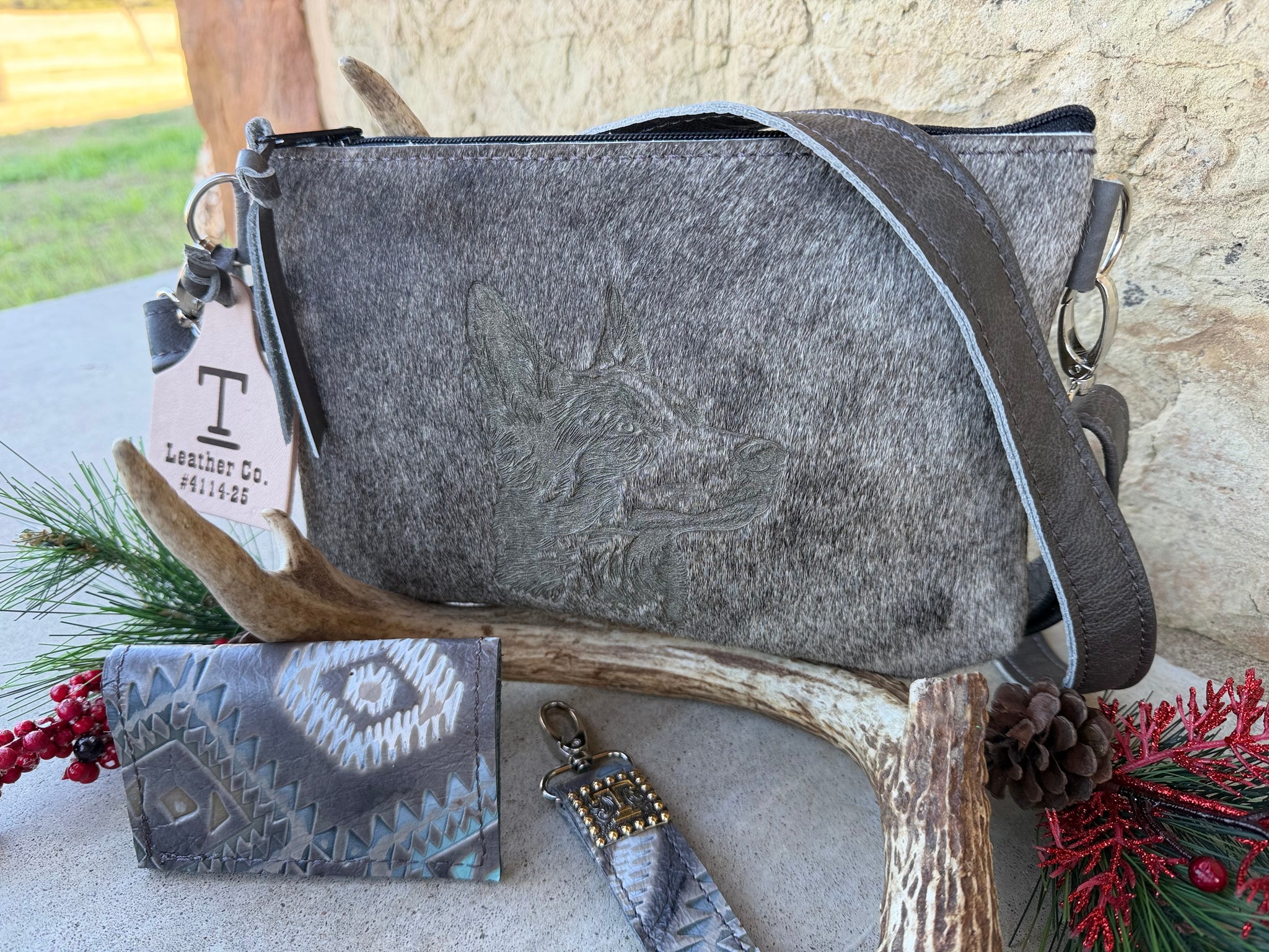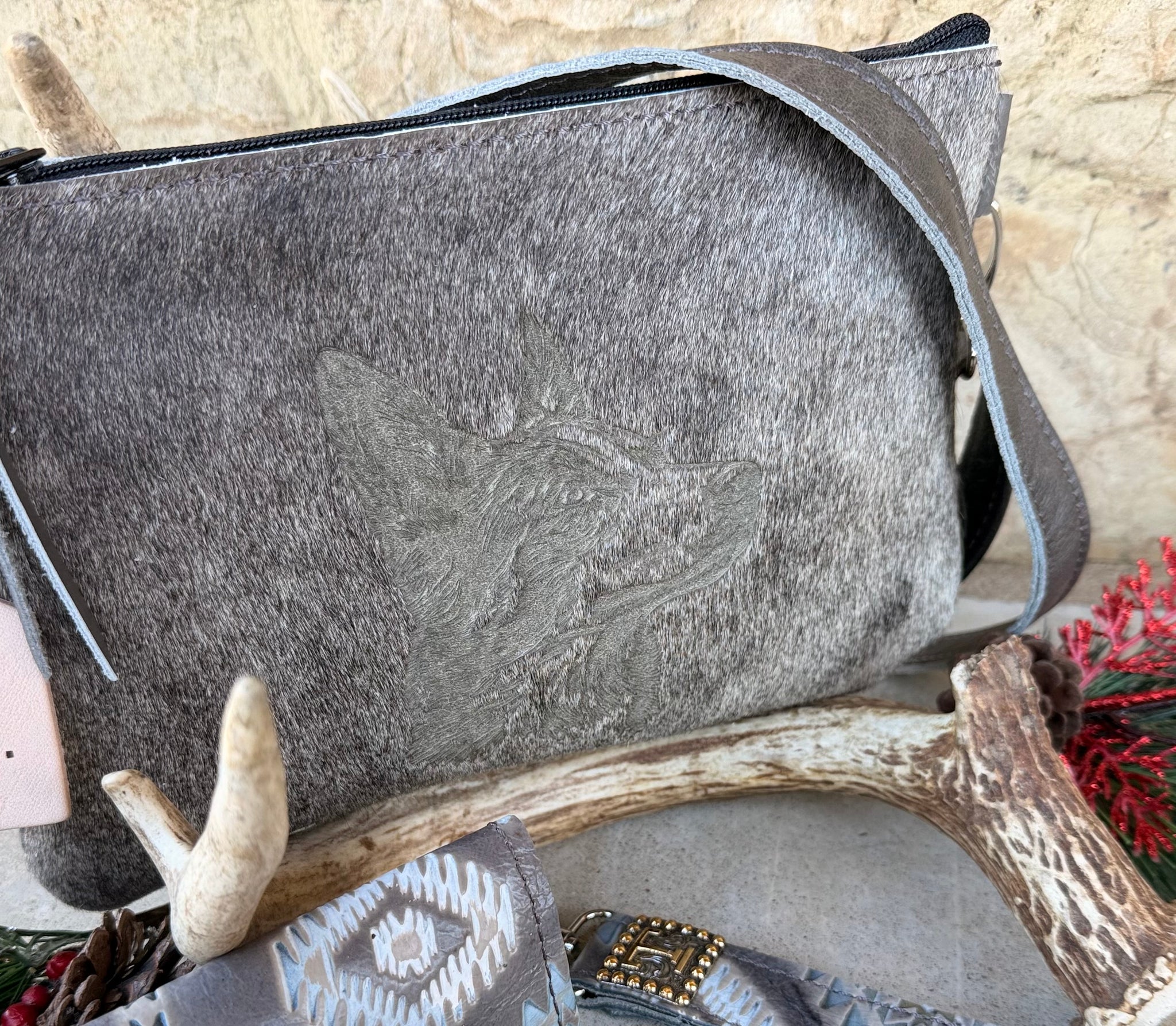 Lasered Heeler on the front cowhide